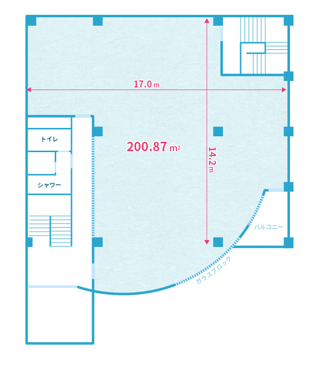 ガラスブロックから光が入る明るいスタジオ。